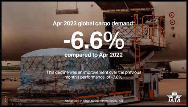 ▪ Nouvelle baisse de l’activité cargo dans le monde. La demande, mesurée en tonnes-kilomètres de fret, a diminué de 6,6% par rapport à avril 2022.