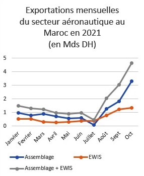 ▪ Augmentation du cumul des exportations du secteur aéronautique au Maroc sur les 10 premiers mois de 2021 de 16,4% par rapport à la même période de 2020.