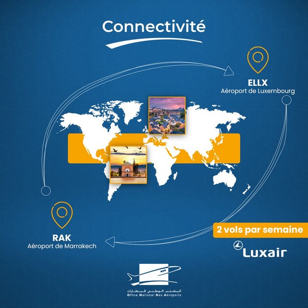 ▪ La compagnie aérienne luxembourgeoise Luxair a rouvert sa ligne depuis l’aéroport de Findel en direction de Marrakech ce samedi 11 février 2023.