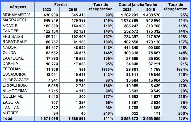 ▪ Hausse du trafic aérien de 11% par rapport au mois de février 2019 dans les aéroport du Maroc.