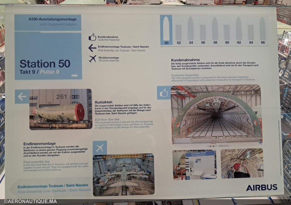 Nous avons pu visiter aussi les lignes d’assemblage final des A320 et A330. Elles se caractérisent par la présence de panneaux explicatifs de chaque phase d’assemblage exécutée devant les visiteurs, ce qui nous immerge plus au cœur de l'action par rapport à celles de Toulouse.