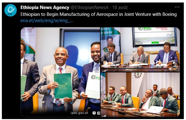 Ethiopian Airlines aurait déjà conclu l'accord, qui inclut également la participation de la société locale de développement des parcs industriels comme annoncé sur X.