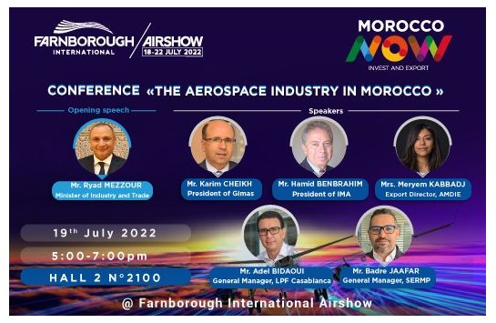 L'AMDIE, qui organise la participation du Maroc au salon, tient aujourd'hui mardi une conférence sur l’industrie aéronautique marocaine, afin d'y présenter l’essor et le dynamisme que connait le secteur aéronautique marocain aujourd’hui.