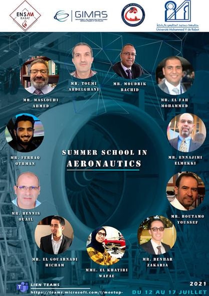 L'ENSAM (École Nationale Supérieure d'Arts et Métiers) de Rabat organise du lundi 12 juillet au samedi 17 juillet et en partenariat avec le réseau des Experts Marocains d’Amérique du Nord en Aéronautique (EMAN AEROSPACE) une université d'été en aéronautique.