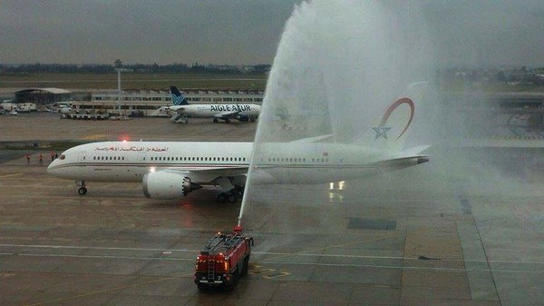 Le nouveau Boeing 787 de Royal Air Maroc s’est posé aujourd'hui pour la première fois à l'aéroport Paris-Orly. Il a assurer le vol régulier AT764/AT765 entre Casablanca et Paris. C'est le premier B787 Dreamliner à desservir cet aéroport.