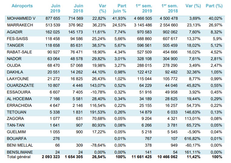 Les aéroports du Maroc signent ce mois de juin un nouveau record de 2 093 323 passagers accueillis, soit une évolution record de +26,54%, plus de 439 000 passagers additionnels par rapport à la même