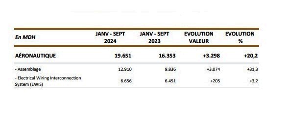 Les exportations du secteur aéronautique marocain continuent d'augmenter avec des performances remarquables à fin septembre 2024. À cette date, le secteur a enregistré une hausse de 20,2% par rapport à l'année précédente, atteignant 19,65 milliards de dirhams (MMDH) selon le rapport de l'office des changes.