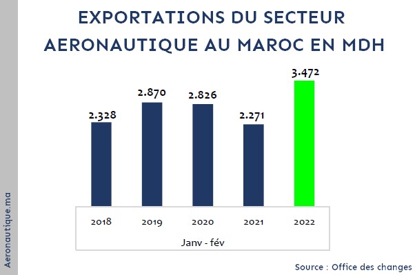 Les ventes du secteur de l’aéronautique au Maroc affichent un accroissement de 52,9% soit +1.201MDH s’élevant à 3.472MDH à fin février 2022 contre 2.271MDH une année auparavant sur la même période.