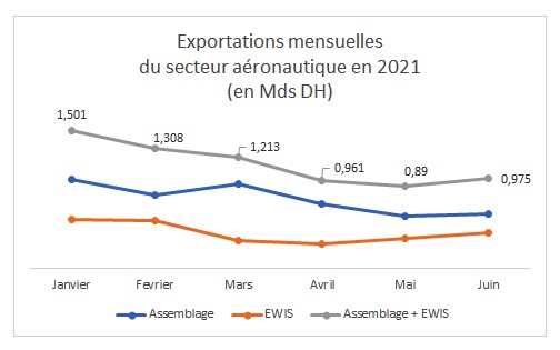 On apprend que les exportations du secteur aéronautique au Maroc durant les cinq premiers mois de l'année 2021, se situant à 6 689 MDH, ont légèrement reculé de 2,8% soit 193 MDH de moins que les cinq premiers mois de 2020.