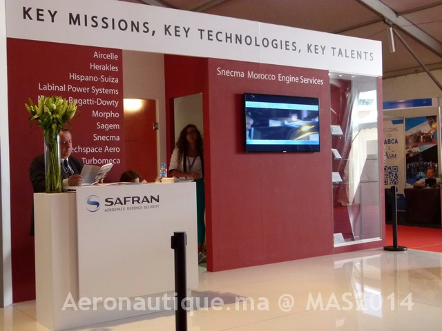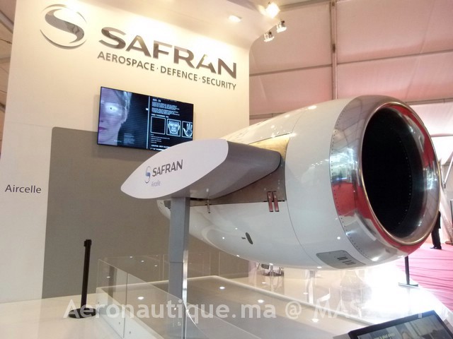 La nacelle est exposée sur le stand de SAFRAN au Marrakech Airshow 2014.