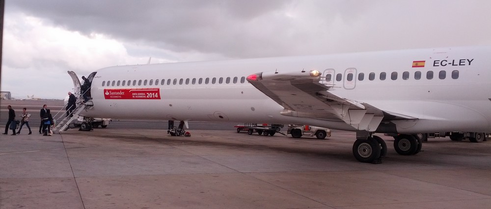 Première surprise, à l'enregistrement le changement d'avion n'a pas été pris en compte alors que le web checking était hors service. Ce n'est qu'à quelques mètres de la porte de l'avion qu'un Stewart espagnole nous annonce avec un grand sourire qu'on peut prendre le siège qu'on veut tout en prenant le soin de barrer avec son stylo notre carte d'embarquement la rendant inutile.