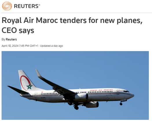 Royal Air Maroc a lancé le 15 avril dernier un appel d'offre pour acquérir de nouveaux avions. C'est ce qu'a déclaré le PDG Abdelhamid Addou à l'agence Reuters. RAM prévoit de quadrupler sa flotte à l’horizon 2037 et devra accélérer la cadence de ses achats en prévision de la co-organisation par le Maroc de la Coupe du Monde 2030, avec l’Espagne et le Portugal.