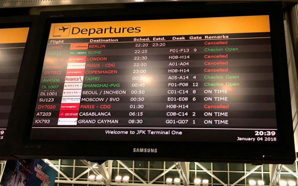 En raison des mauvaises conditions météorologiques enregistrées à New York depuis le 4 janvier courant et suite à l’alerte des autorités aéroportuaires de cette ville signalant des fermetures ponctuelles répétées de l'aéroport international J. F. Kennedy, les vols de l’ensemble des compagnies aériennes connaissent d’importantes perturbations. Royal Air Maroc, n’ayant pas été épargnée, a dû annuler ou reprogrammer quelques vols reliant Casablanca et New York (dans les deux sens).