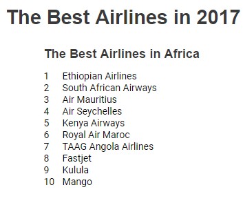 Cette année se distingue par l'entrée de Royal Air Maroc dans le Top 100 des meilleurs compagnies aériennes au Monde, . Qatar Airways passe en première position suivie par Singapore Airlines, All Nippon Airlines. Emirates, classée première en 2016, chute à la quatrième position.
