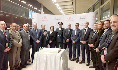 La compagnie nationale Royal Air Maroc a célébré, hier 1er avril, le lancement de la ligne aérienne Casablanca-Amman. Le vol inaugural AT260 a atterrit à l’aéroport Queen Alia après 05:10 de vol et a été accueillit avec un jet d’eau par les pompiers de l’aéroport en présence de l’ambassadeur du Maroc en Jordanie, Mohammed Sitri, et plusieurs personnalités et des autorités locales jordaniennes.