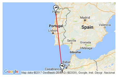 Les départs de Casablanca sont prévus les Lundis, Jeudis et Dimanches à 15:05 pour arriver à Porto à 16:45 (Vol AT996). Les retours sont programmés les mêmes jours avec des départs à 17:45 pour arriver à Casablanca à 19:20 (Vol AT997).