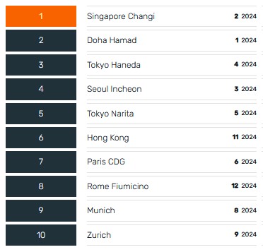 Le classement annuel des Skytrax World Airport Awards a été dévoilé le 9 avril 2025 à Madrid. Il a une nouvelle fois mis en lumière les meilleurs aéroports du monde. En tête de liste mondiale, l'aéroport Changi de Singapour conserve son titre de "Meilleur aéroport du monde", une distinction qu'il remporte pour la treizième fois.
