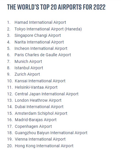 L’aéroport Cape Town, en Afrique du Sud, reste en tête de classement suivi par deux autres aéroports du pays : Durban et de Johannesburg, vient ensuite, comme en 2021, l'aéroport de l'île Maurice.