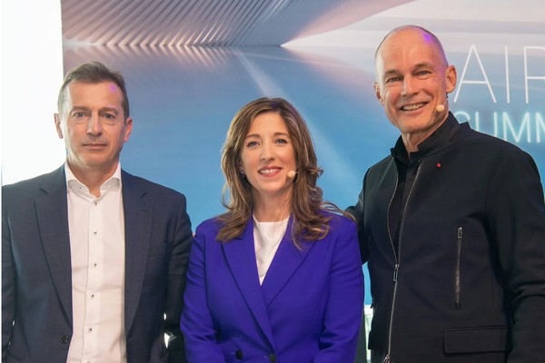 Guillaume Faury (Directeur général d'Airbus), Julie Kitcher (Chief Sustainability Officer et Directrice de la Communication) et Bertrand Piccard (Solar Impulse)