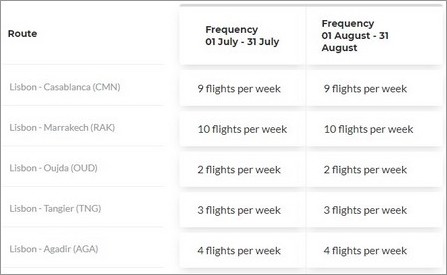 Sur son site, la compagnie donne plus de précision sur la fréquence de ces liaisons: Casablanca 9 fois par semaine, Marrakech 10 fois par semaine, Tanger 3 fois par semaine, Oujda 2 fois par semaine et Agadir 4 fois par semaine.