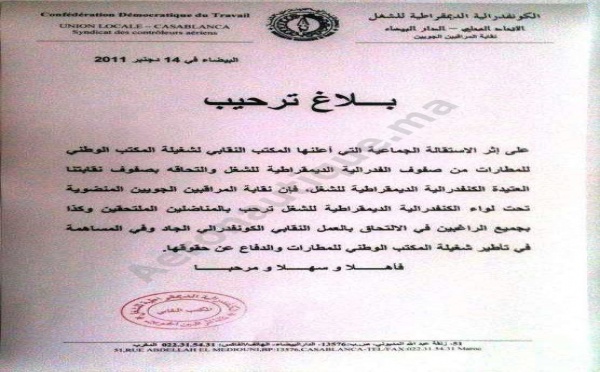 Hier, le syndicat des cadres et employés de l'Office National Des Aéroports (ONDA) a fini par quitter le bateau de la Fédération Démocratique du Travail (FDT), proche de l'USFP, pour intégrer la Confédération démocratique du Travail (CDT). Le...