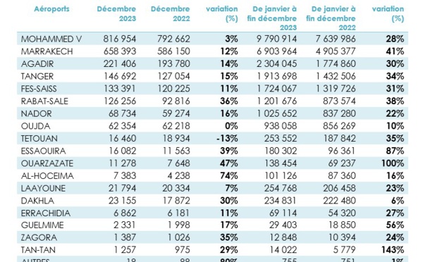 Les aéroport au Maroc ont reçu plus de 27 millions de passagers durant l’année 2023, le trafic aérien au départ et à l’arrivée de ces aéroports a ainsi enregistré un nouveau record avec un taux de croissance de l’ordre de 32 % par rapport à l’année...