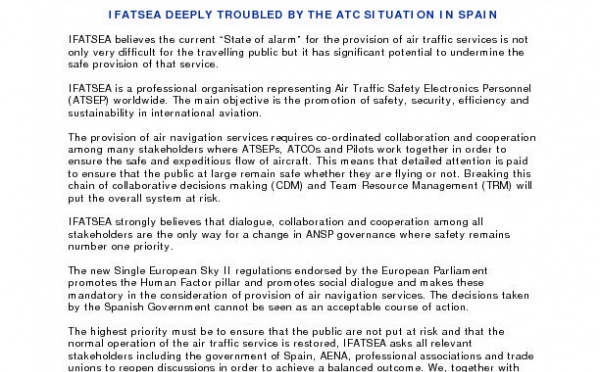 IFATSEA believes the current “State of alarm” for the provision of air traffic services is not