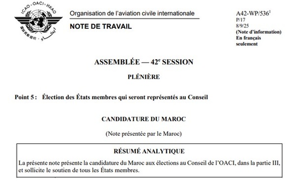 Lors de la 42ème Assemblée de l’OACI en septembre 2025, le Maroc a officiellement présenté sa candidature aux élections du Conseil de l’Organisation de l’Aviation Civile Internationale (OACI). Cette initiative s’appuie sur l’engagement historique du...