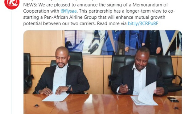 South African Airways (SAA) et Kenya Airways (KQ) ont signé un accord de coopération dans une perspective à long terme pour créer un groupe aérien panafricain, ont annoncé aujourd'hui mardi les deux compagnies. "Il ne s'agit pas d'une fusion mais...