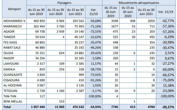 Les aéroports du Royaume ont enregistré durant le 1er semestre 2021, un volume de trafic commercial passager de 2 473 988 passagers contre 11 669 548 passagers durant la même période de l’année 2019, soit une baisse de...