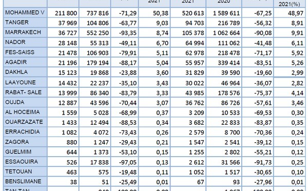 Les aéroports du Royaume ont enregistré en janvier 2021 une baisse de l’ordre de 68,39% par rapport à la même période de l’année 2020, en accueillant 638 806 passagers contre 2 020 647 passagers accueillis en janvier 2020. L’aéroport...