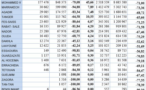 Sur les dix premiers mois de l’année 2020 (de janvier à fin octobre 2020), le trafic commercial des passagers a enregistré une baisse de 70,79 %, par rapport à la même période en 2019. Le trafic international est en recul de 71,87 %, du fait d'une...