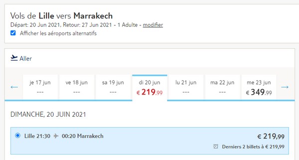 - Marrakech: les jeudis et dimanches à partir du 20 juin