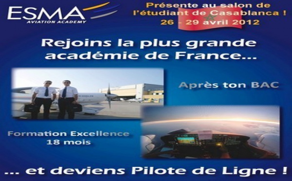 ESMA Aviation Academy sera présente au Forum International de l'étudiant de Casablanca qui se déroulera du 26 au 29 avril 2012 à la Foire Internationale de Casablanca. Seule école de formation membre du Syndicat des Compagnies Aériennes Autonomes...