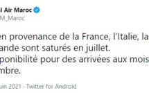 La compagnie nationale Royal Air Maroc a annoncé sur son compte Twitter que les vols en provenance de France, d’Italie, de Belgique et de Hollande sont saturés en juillet. La compagnie a toutefois rappelée qu'“une large disponibilité pour des arrivées aux mois d’août et de septembre”. Royal Air...